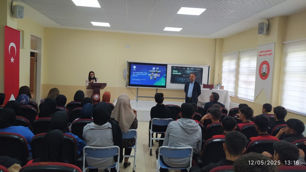 Tubitak bilim söyleşileri kapsamında okulumuz konferans salonunda, “Teknolojiyle Dil, Yapay Zeka ve Dijital Dünyada Dil Öğrenimi” hakkında söyleşi yapıldı.